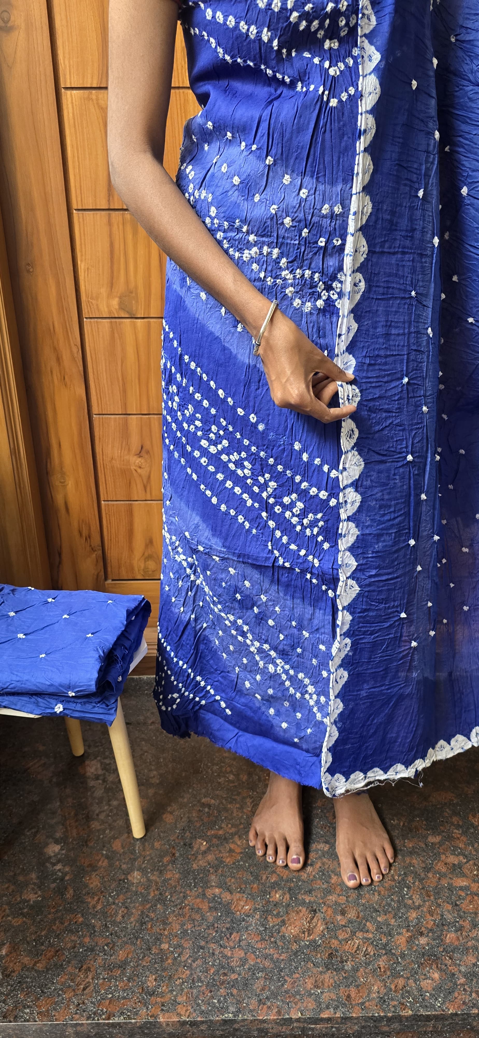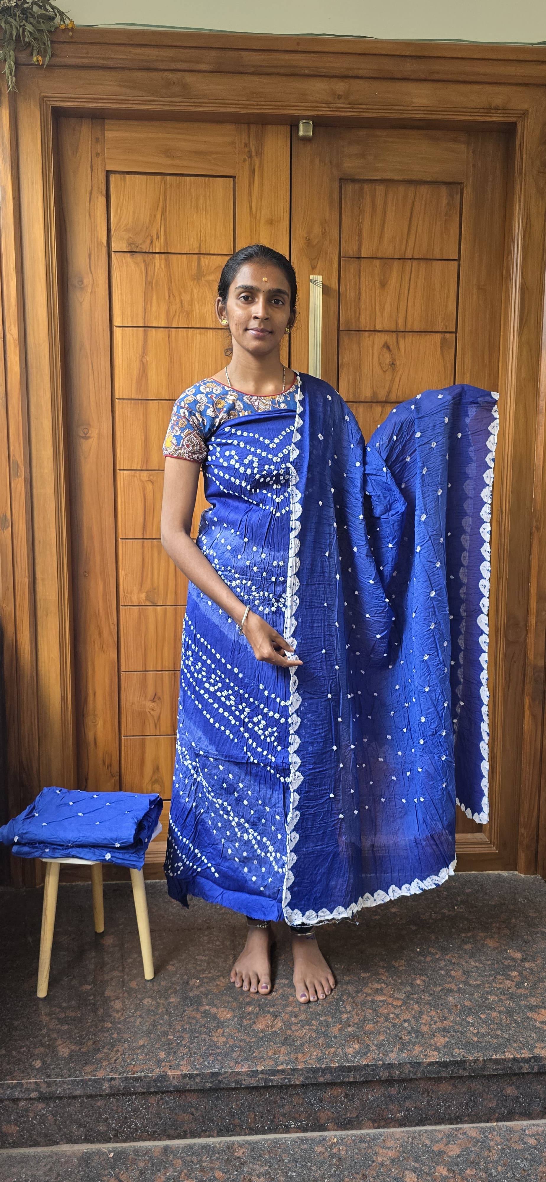Excellent quality completely hand made tie and dye premium soft bandhini cotton top, tie and dyed Bandhini cotton bottom, tie and dyed bandhini cotton dupatta with edges.