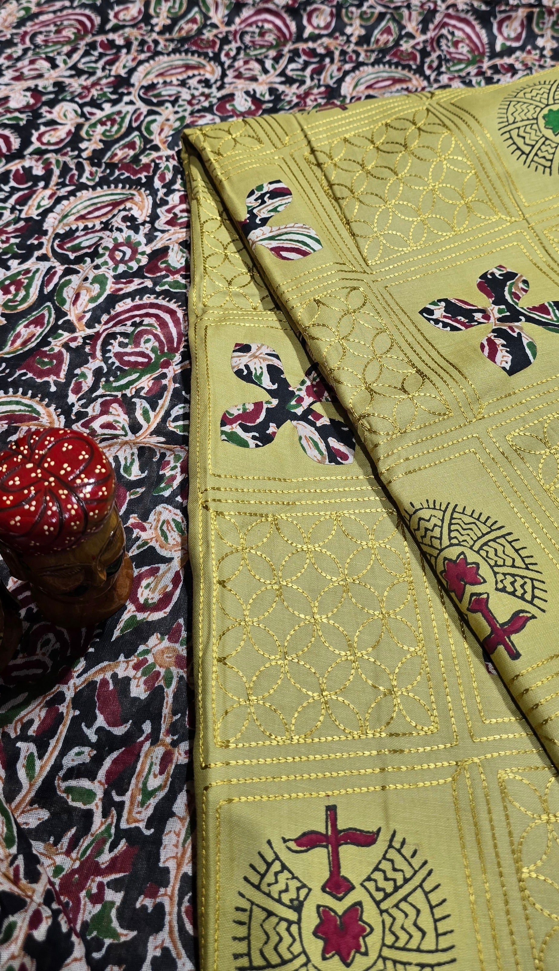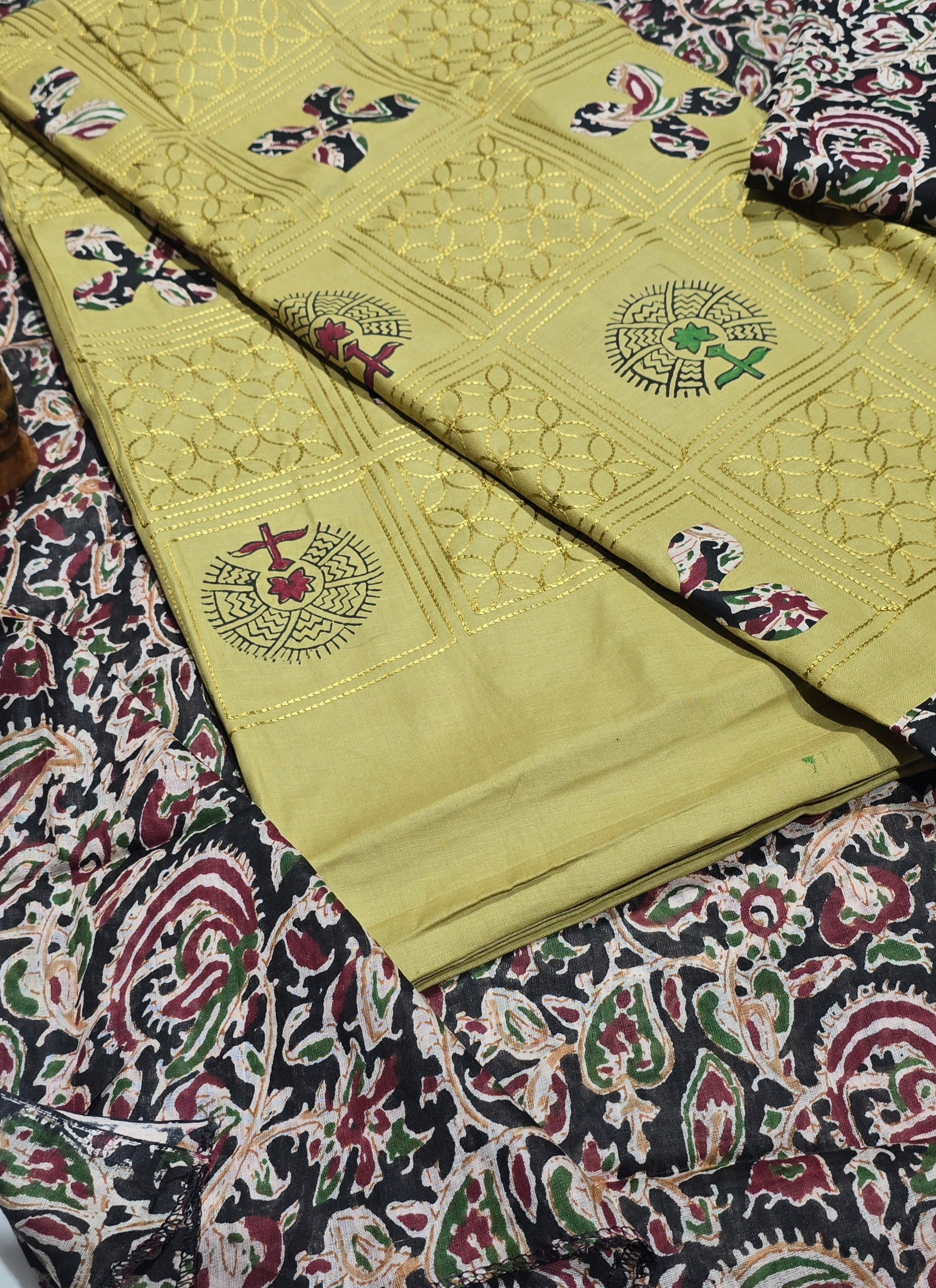 Superb quality applique worked kalamkari cotton top, , premium cotton bottom, pure kalamkari cotton dupatta.