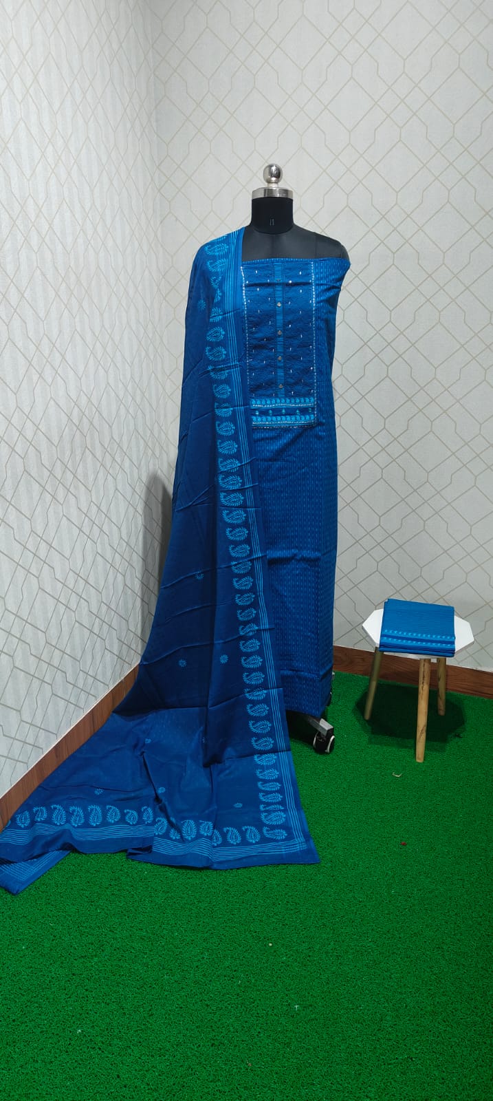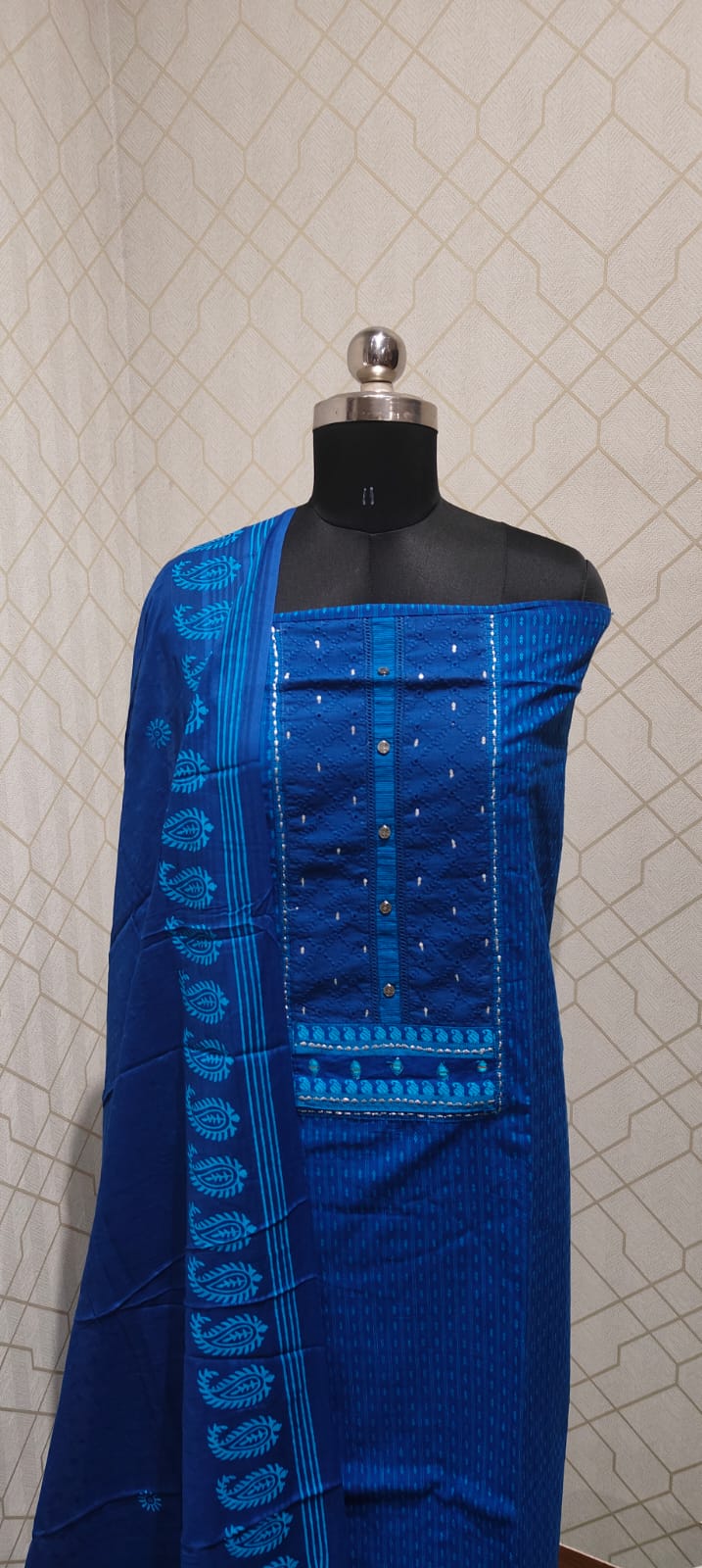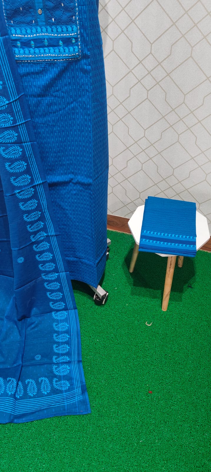Most rich quality both side jamdhani weaved 100% pure cotton top with grand hand work for neck, premium cotton with jamdhani weavings and borders, block printed excellent pure cotton dupatta.