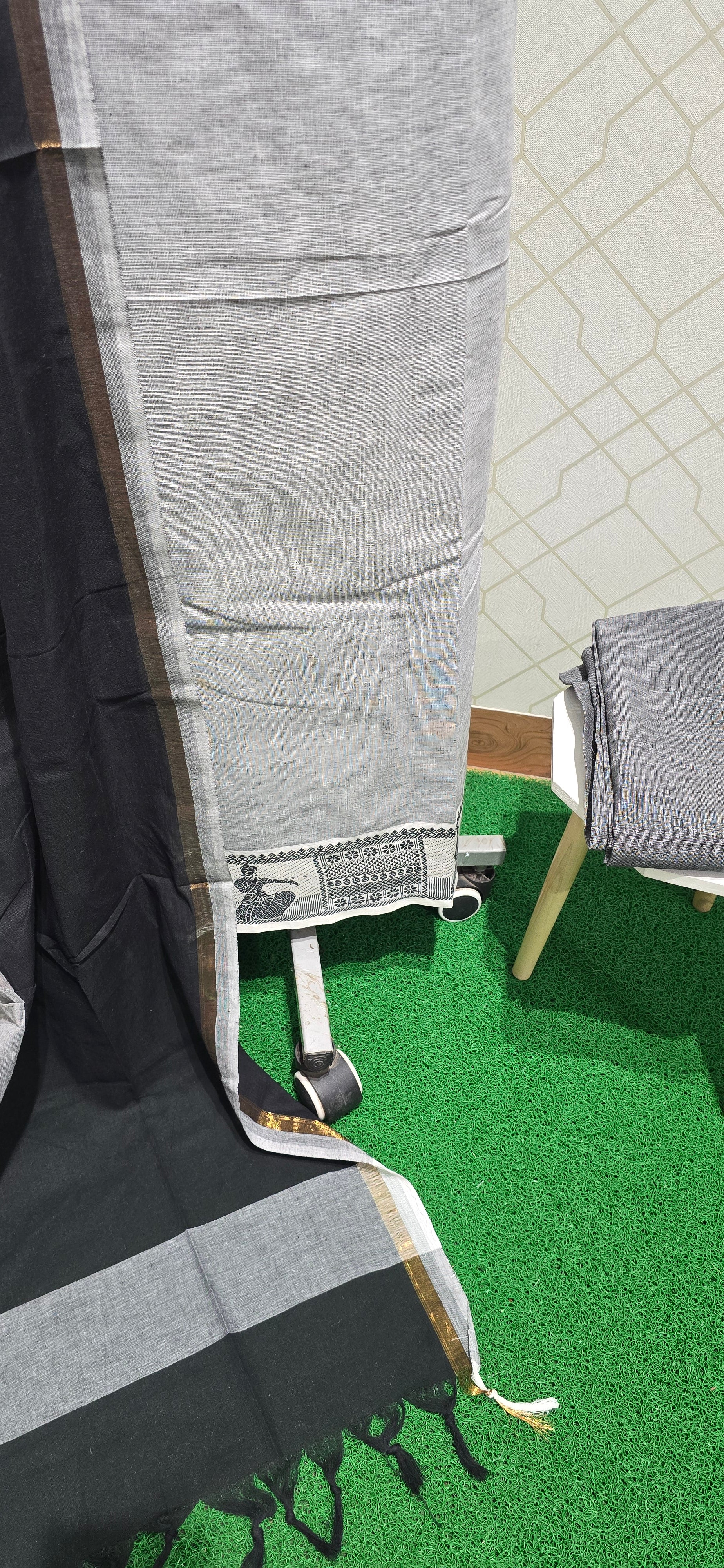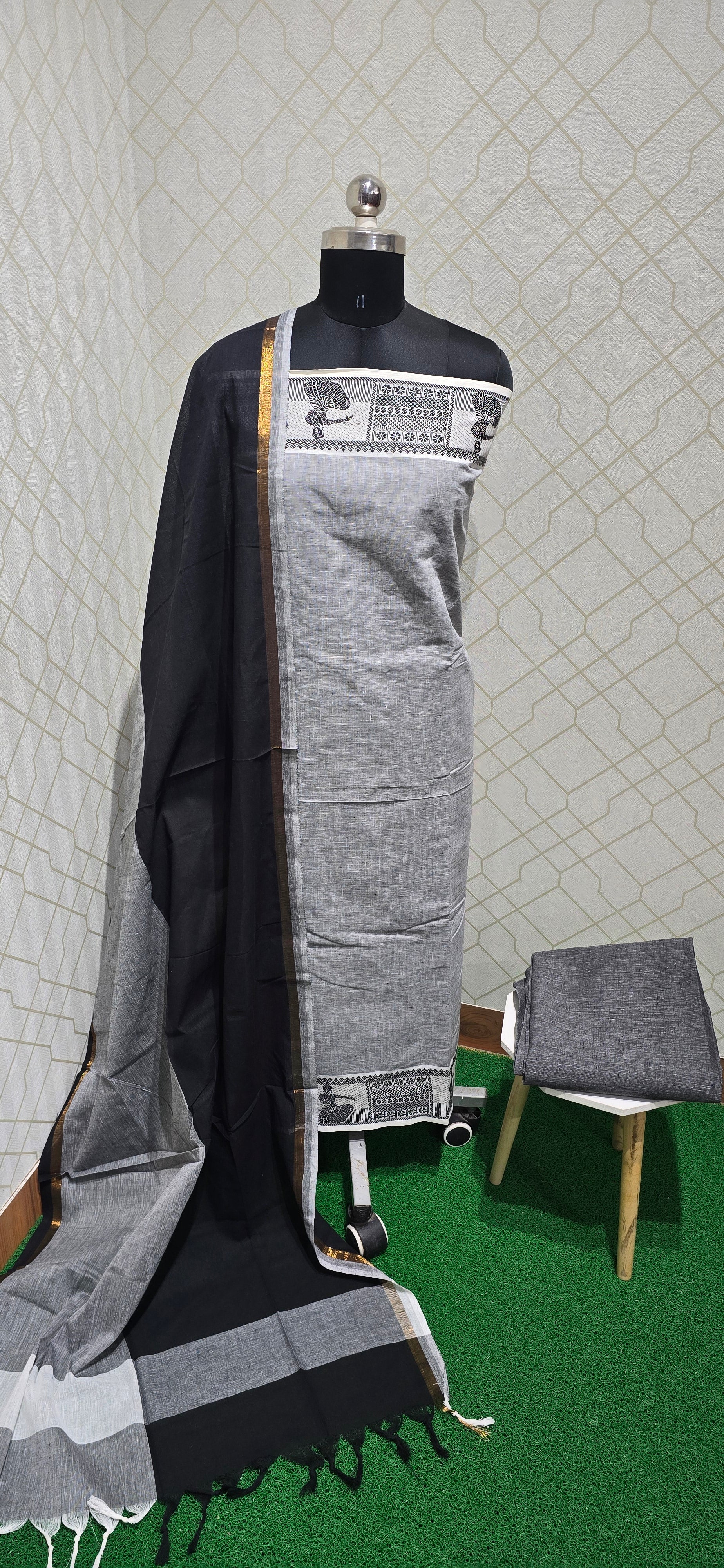 Superb quality 100% pure cotton top with both side thread weaved borders, 100% pure cotton bottom, 100% pure cotton dupatta with borders and tassels..