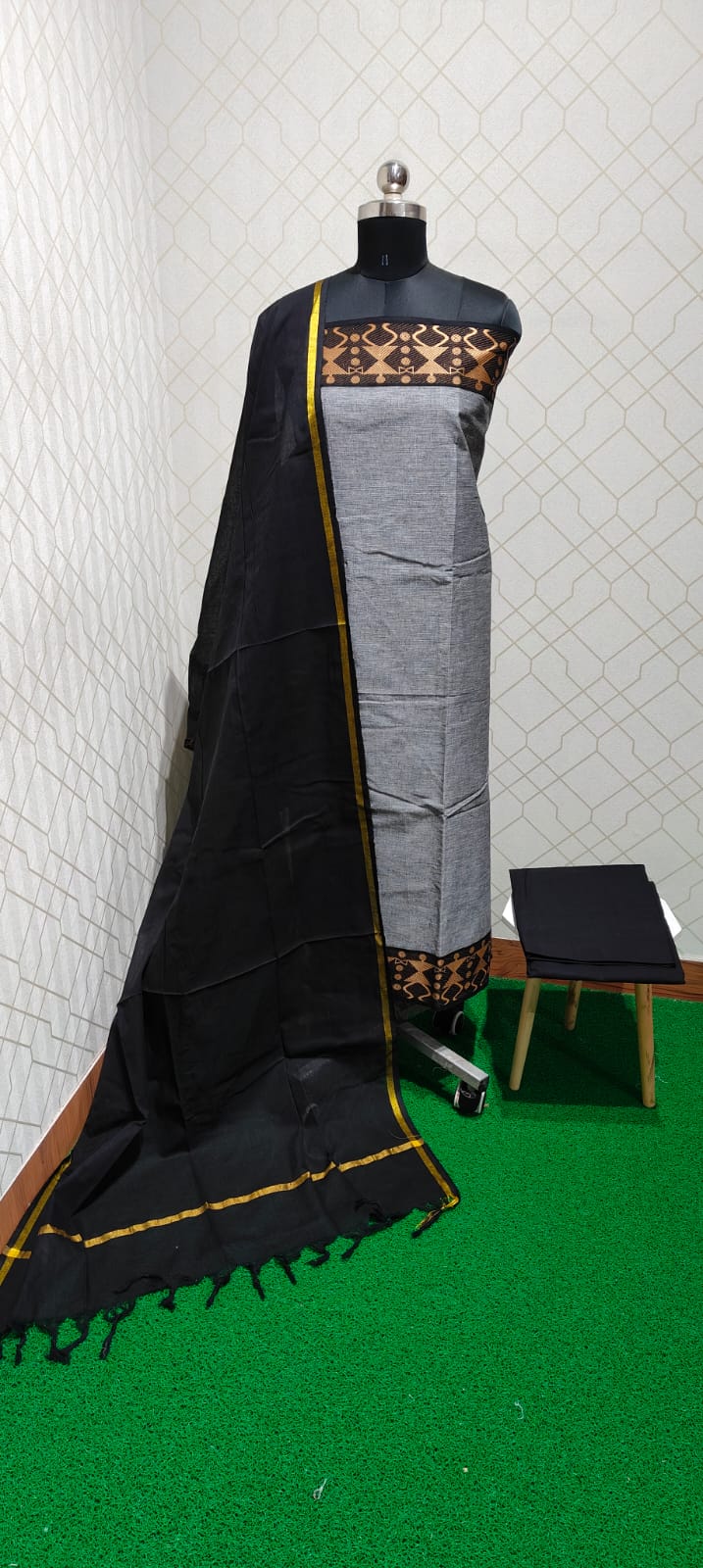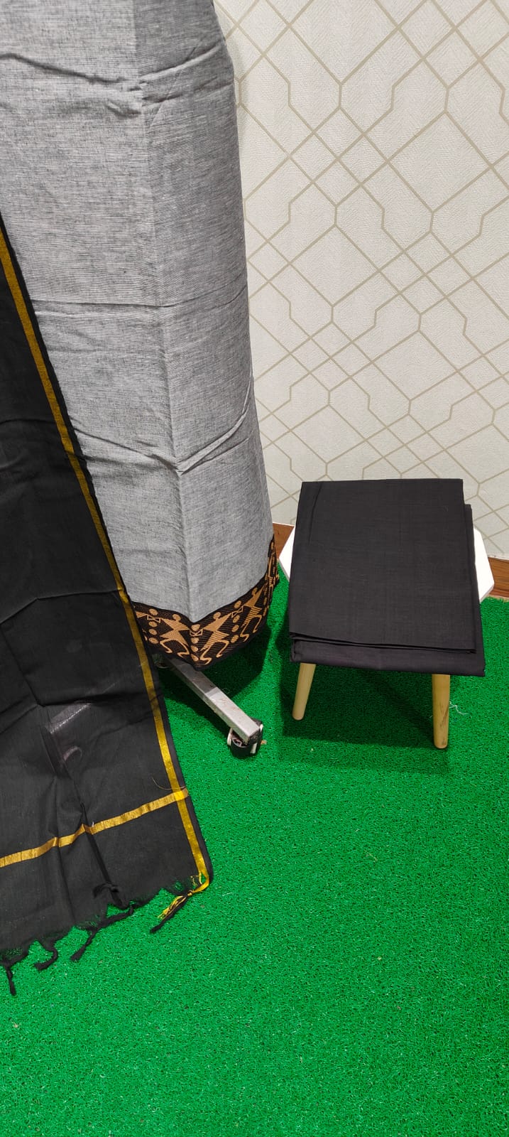 2.5 mtrs both side warli border weaved premium pure cotton top, pure cotton bottom, pure cotton dupatta with zari borders and tassels...