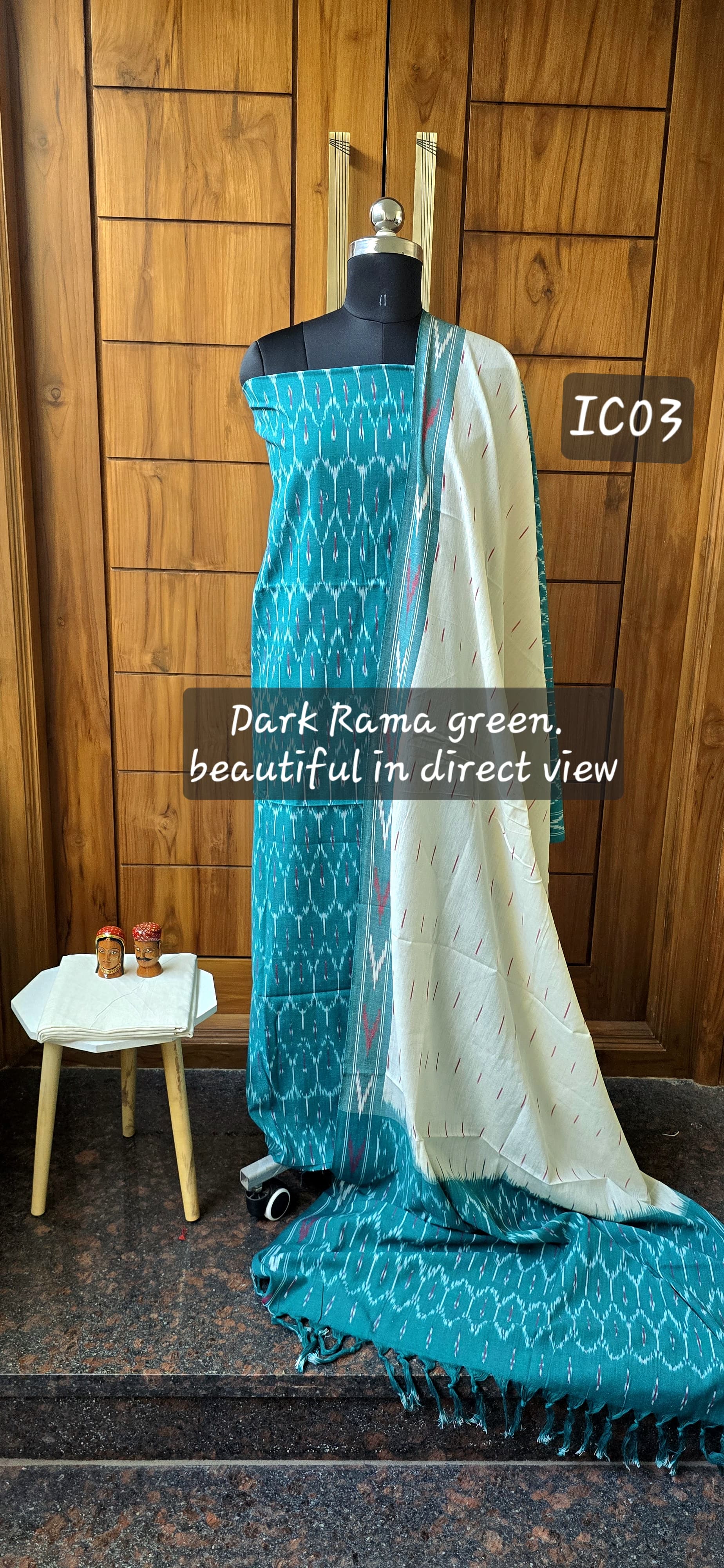 Both side ikkat weaved pure cotton top, pure cotton bottom, 2.5 mtrs ikkat cotton dupatta with ikkat borders and tassels...