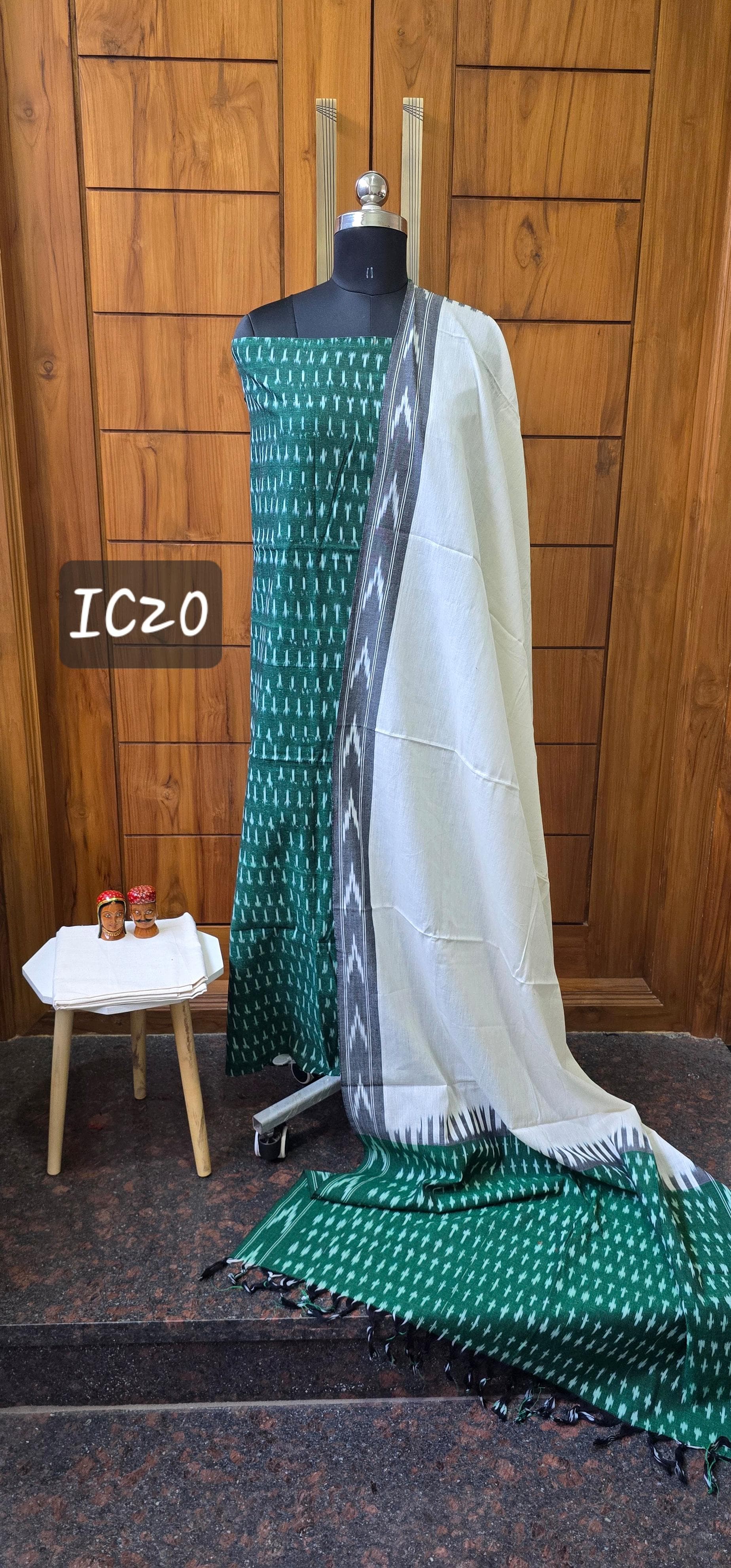Both side ikkat weaved pure cotton top, pure cotton bottom, 2.5 mtrs ikkat cotton dupatta with ikkat borders and tassels...