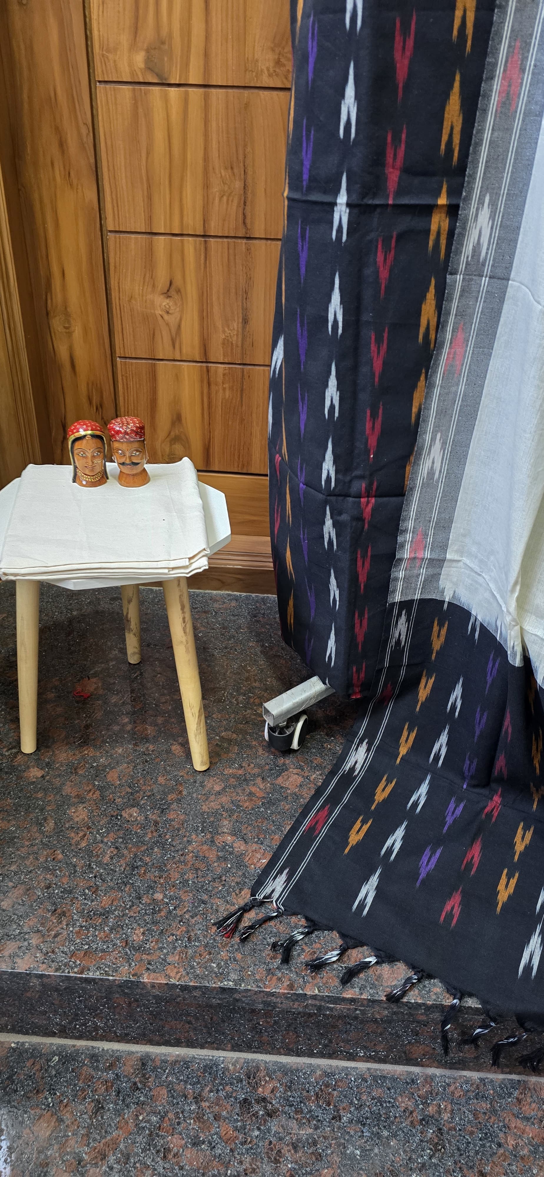 Both side ikkat weaved pure cotton top, pure cotton bottom, 2.5 mtrs ikkat cotton dupatta with ikkat borders and tassels...