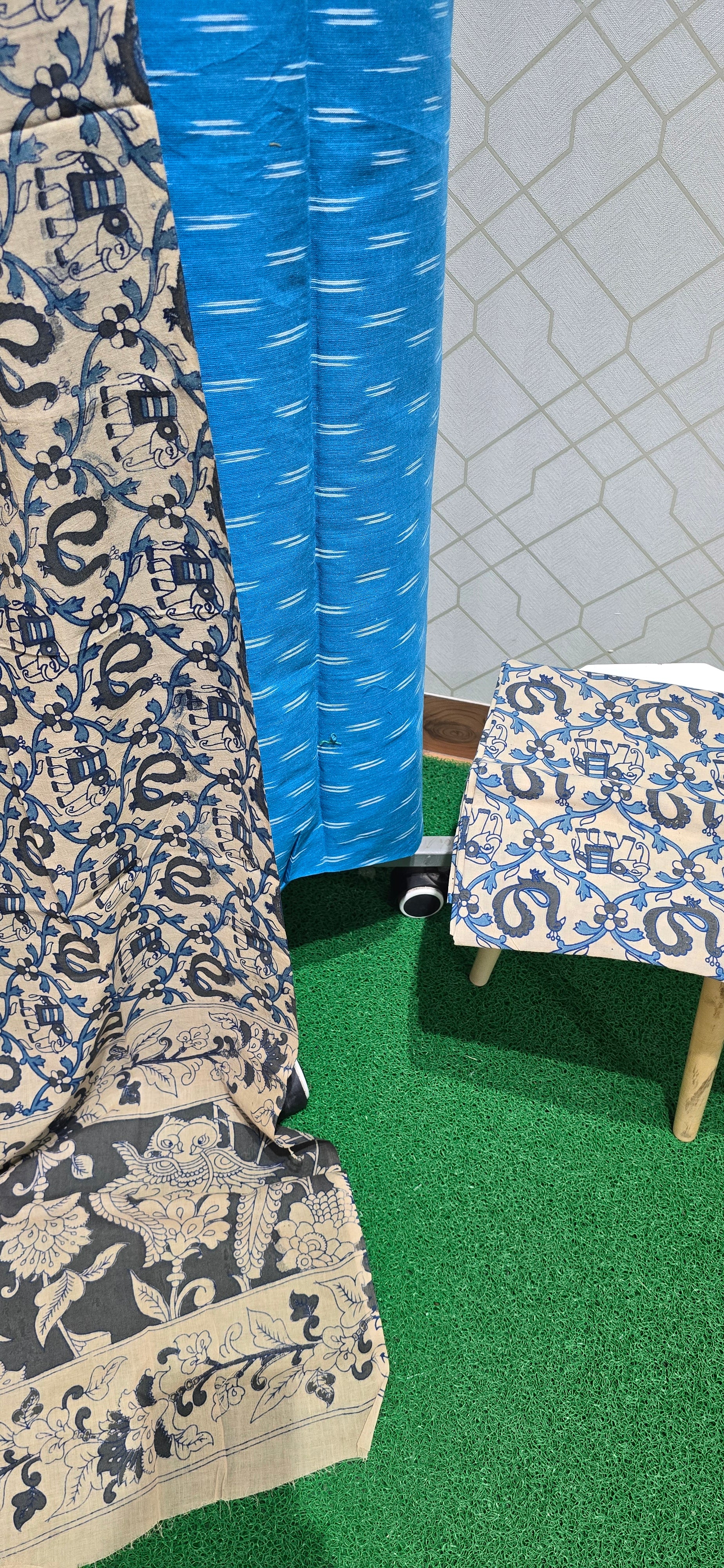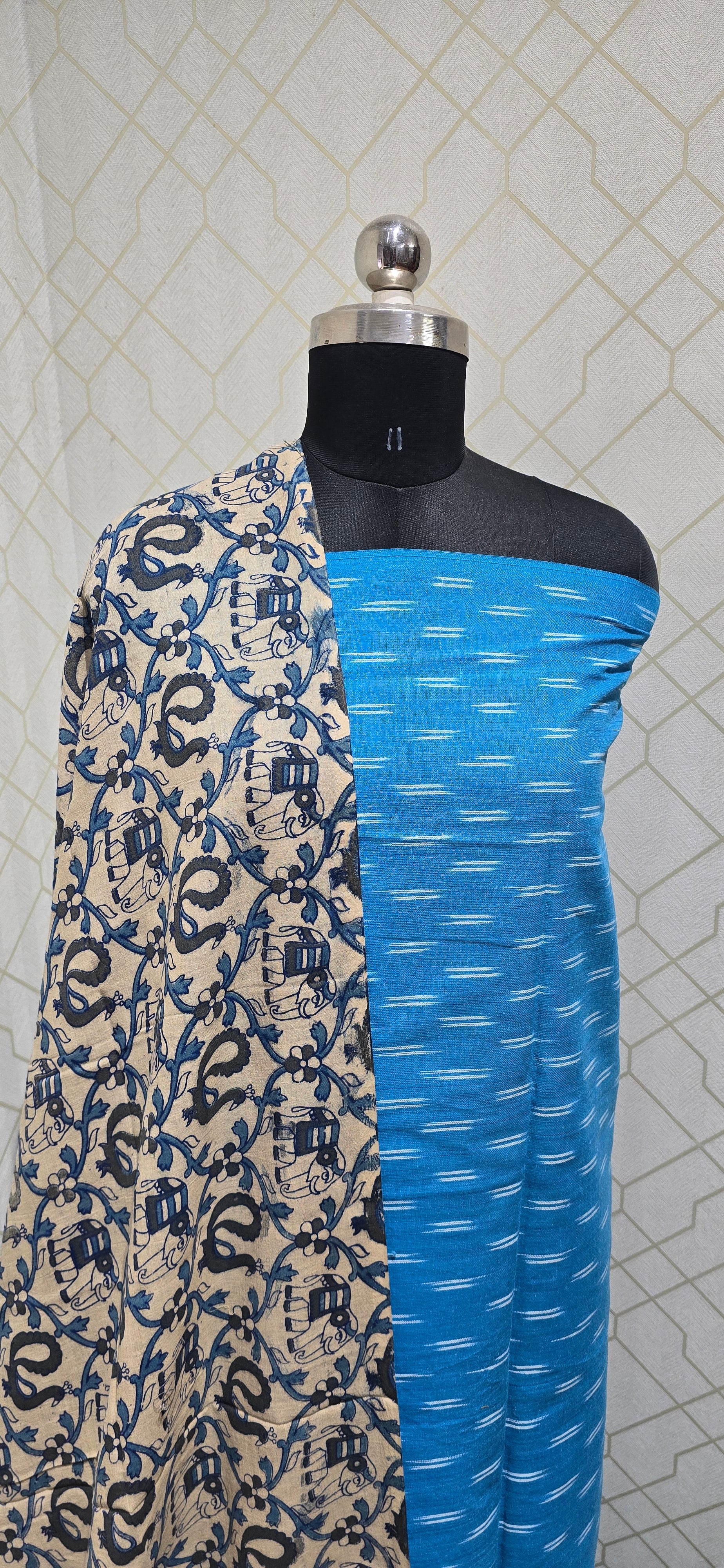 Superb quality 100% pure Ikkat cotton top, 100% pure authentic block printed pure Kalamkari cotton bottom, 100% pure authentic block printed kalamkari cotton dupatta...