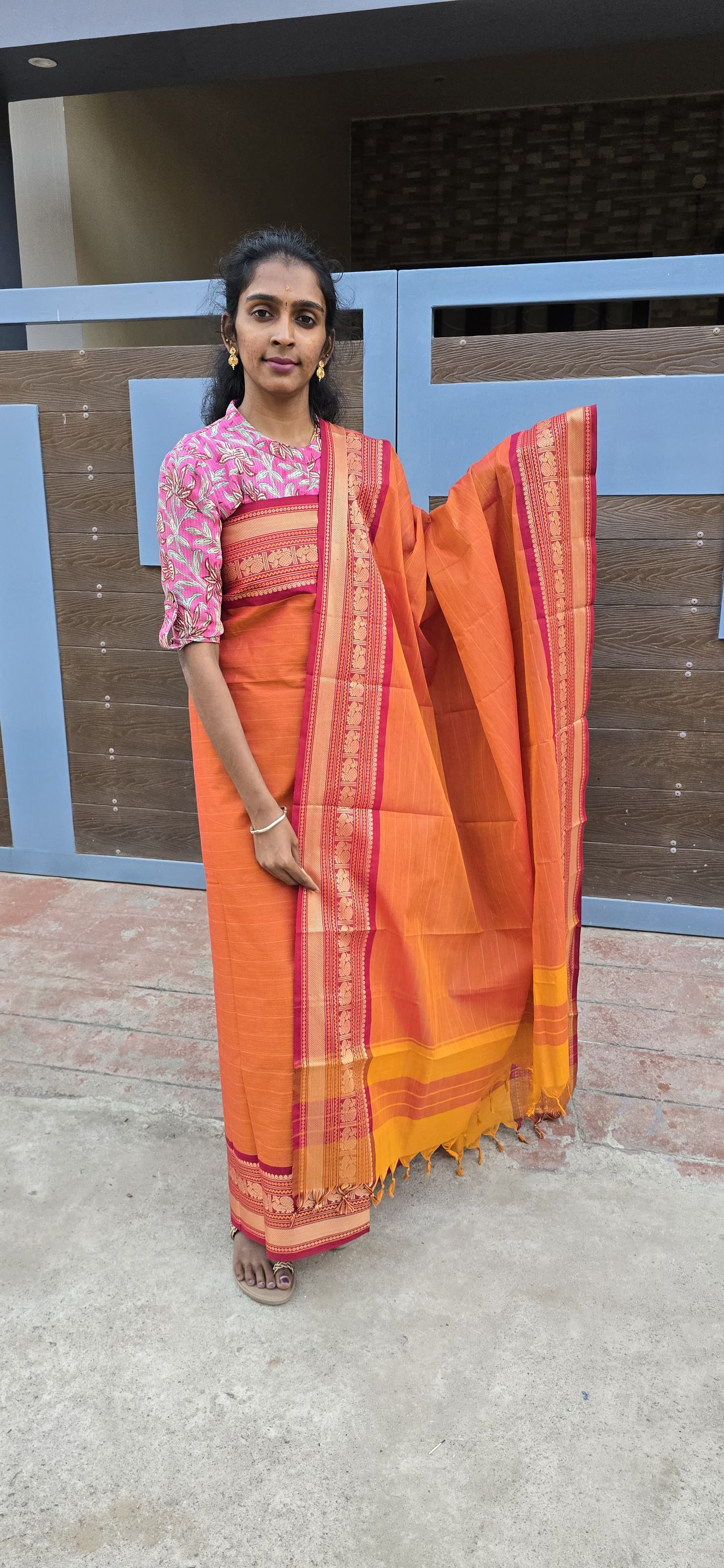 2.5 meters 100 count premium quality pure kanchi cottage top with very elegantly double side zari weaved borders, no bottom, 2.5 meters 100 count premium quality pure kanchi cotton dupatta with zari borders and tassels.