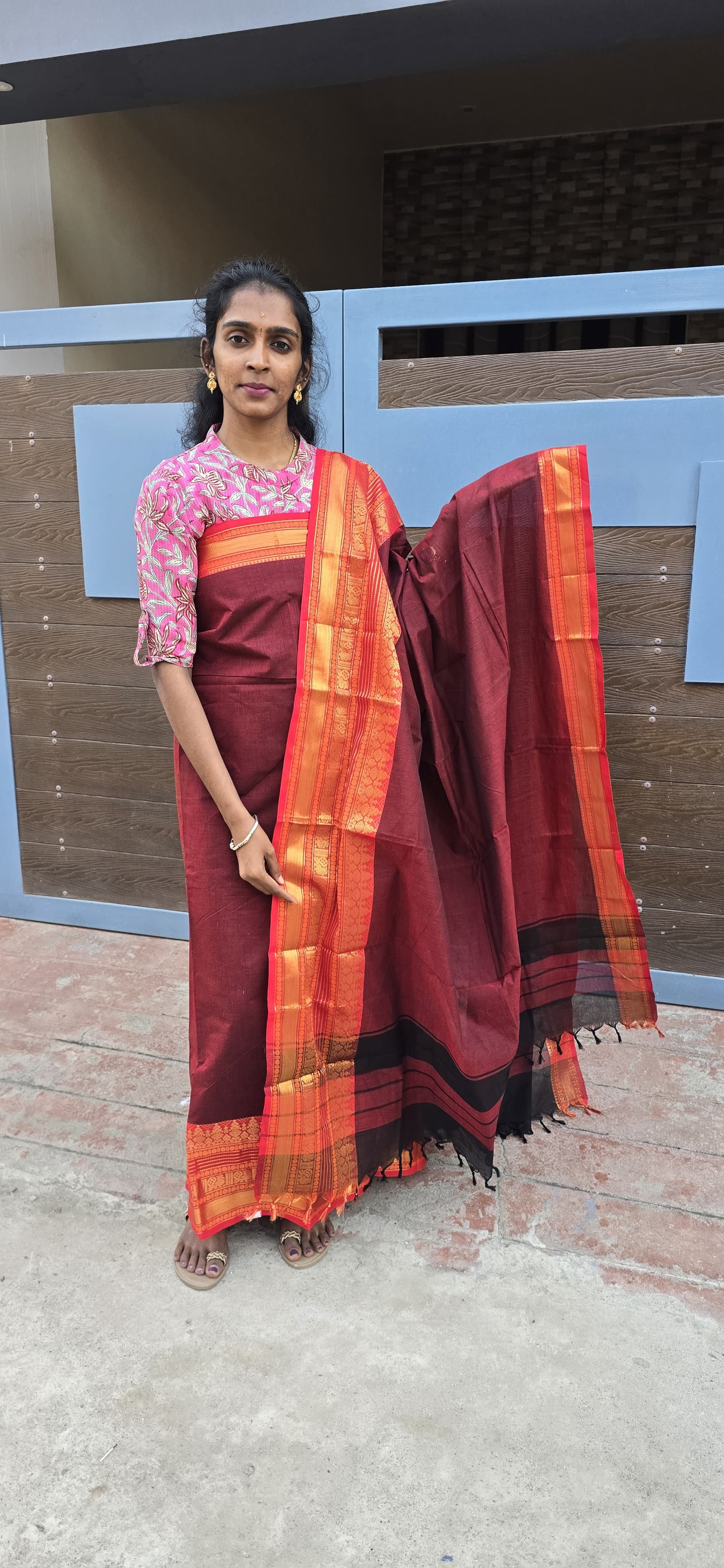 2.5 meters 100 count premium quality pure kanchi cottage top with very elegantly double side zari weaved borders, no bottom, 2.5 meters 100 count premium quality pure kanchi cotton dupatta with zari borders and tassels.