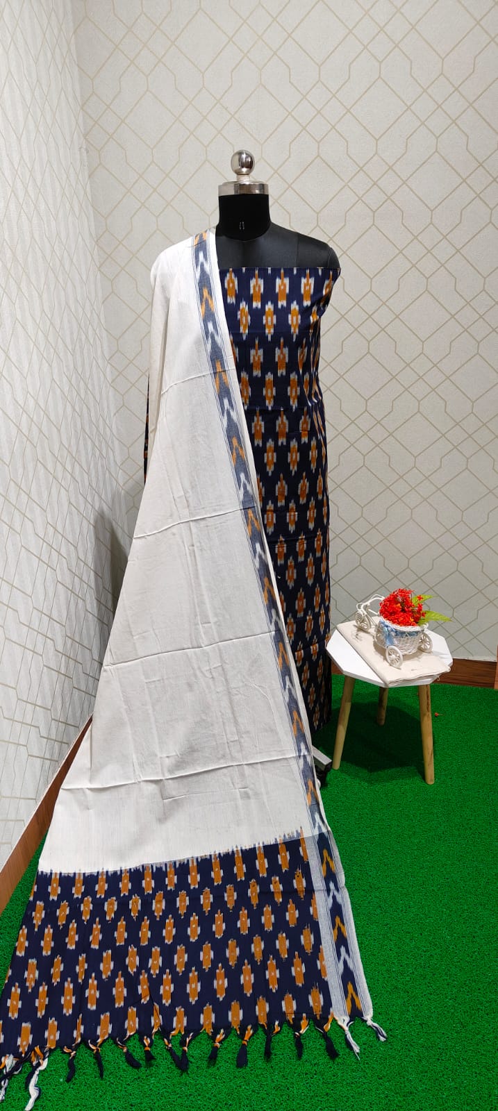 2.5 meters ikkat cotton top, cotton bottom, 2.5 mtrs ikkat cotton dupatta