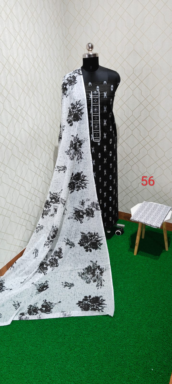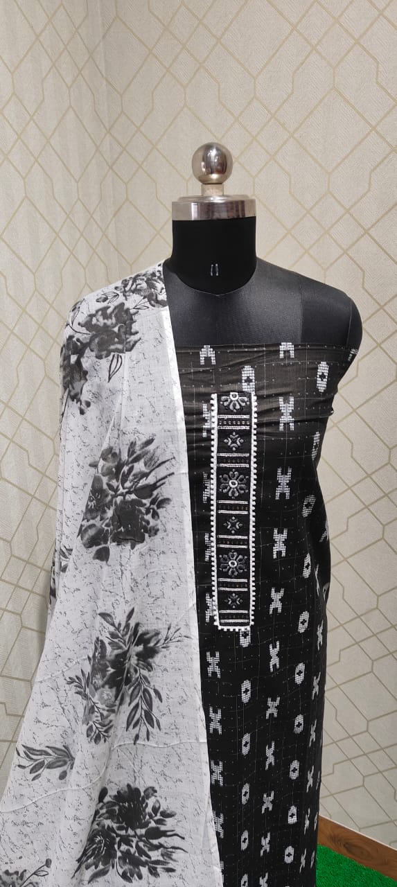 Both side printed pure cotton top with neck pattern, printed pure cotton bottom, printed pure cotton dupatta
