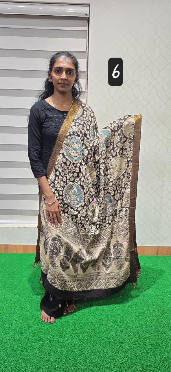 2.5 mtrs Authentic kalamkari dupatta with nizam border and tassels…