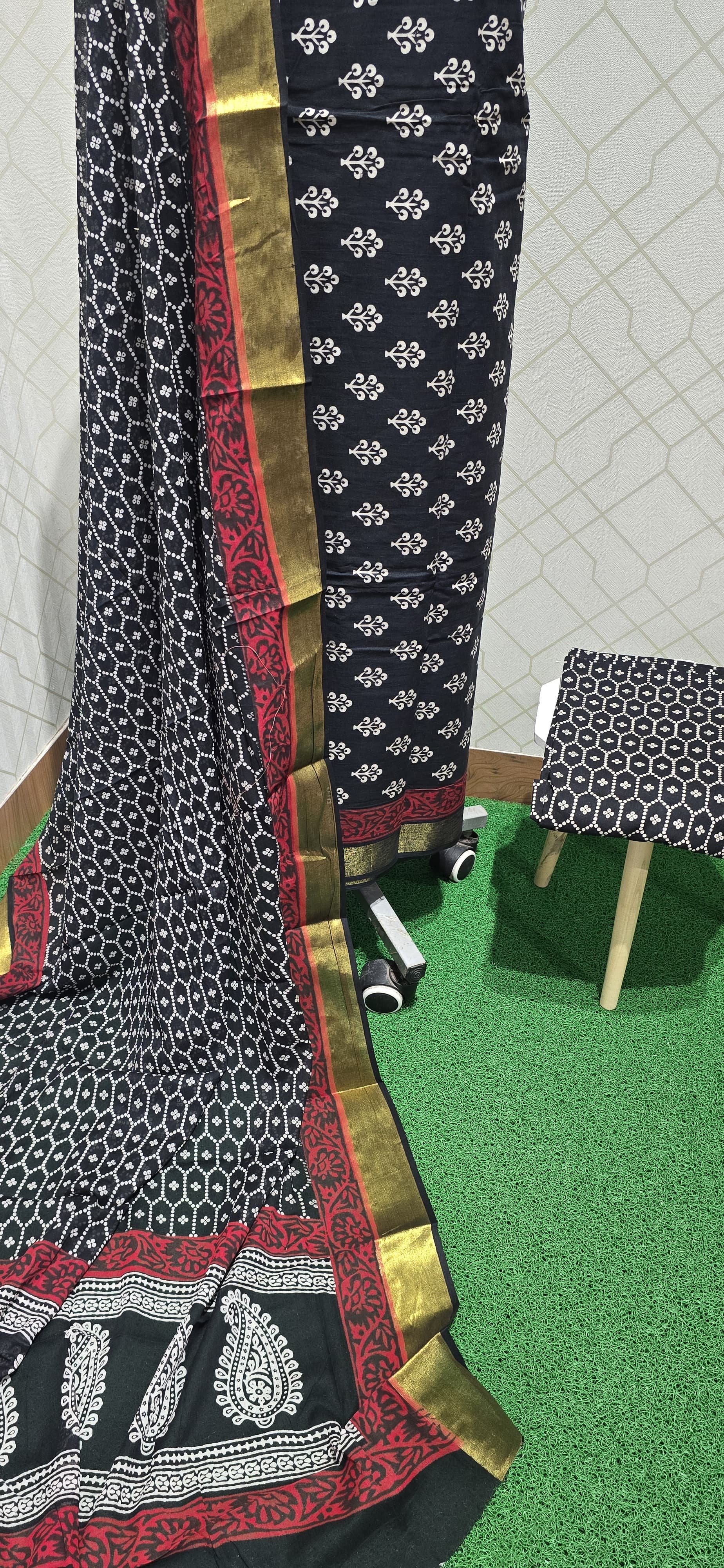 Premium quality bathik dyed cotton top with zari daman, cotton bottom, bathik dyed cotton dupatta dupatta with zari borders.