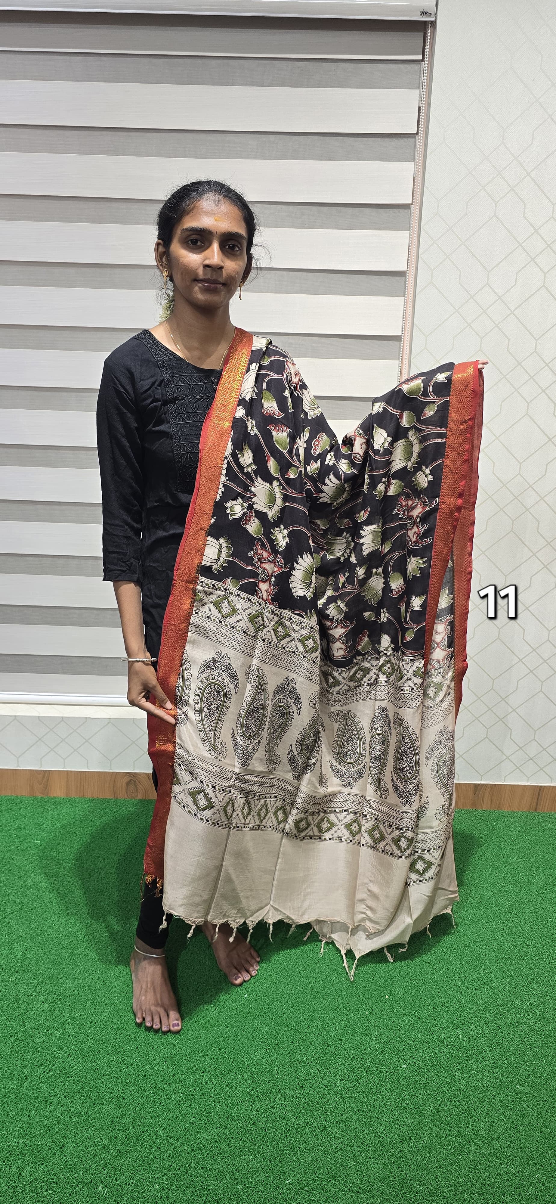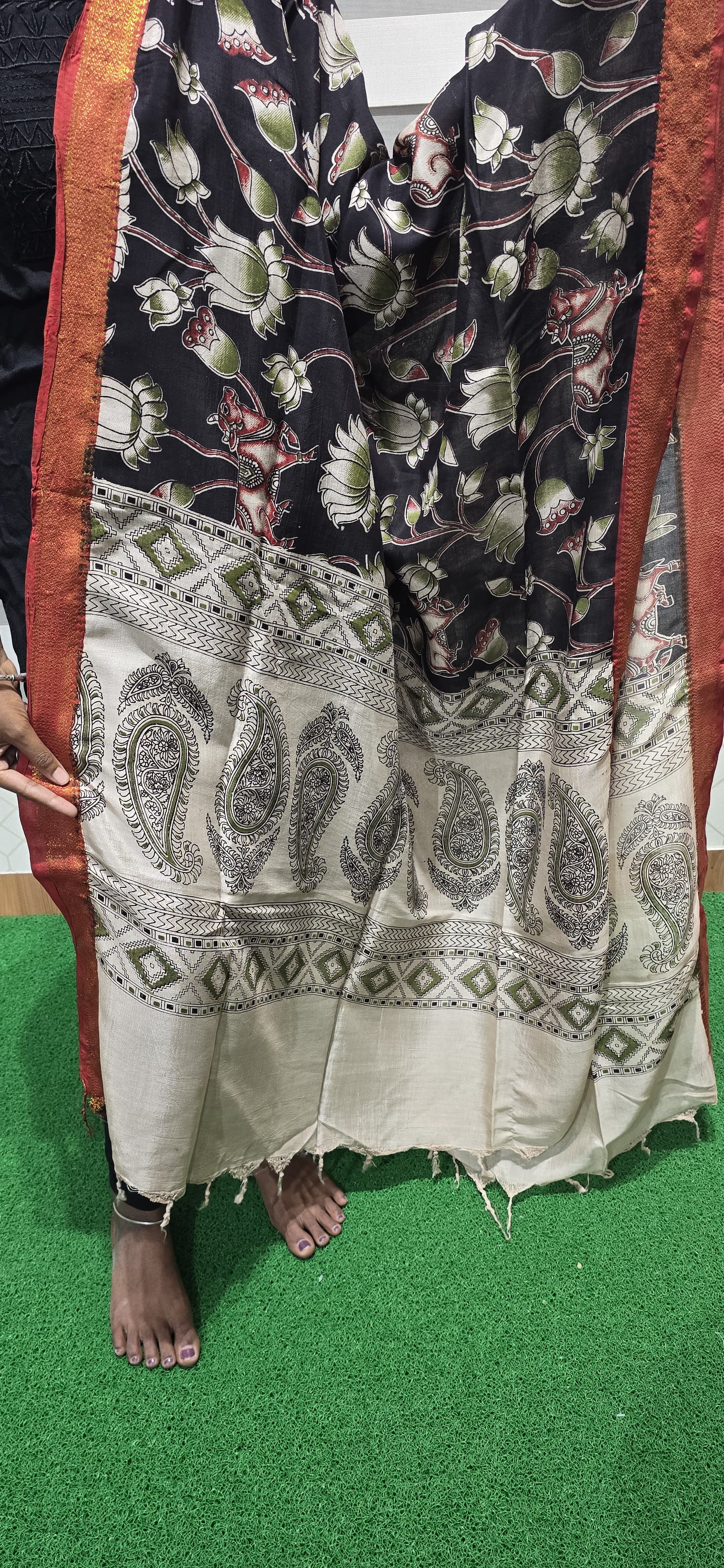 2.5 mtrs Chennuri silk dupatta with Nizam borders and tassels. If you have any specific requirements contact us in whatsapp no : 9385964264