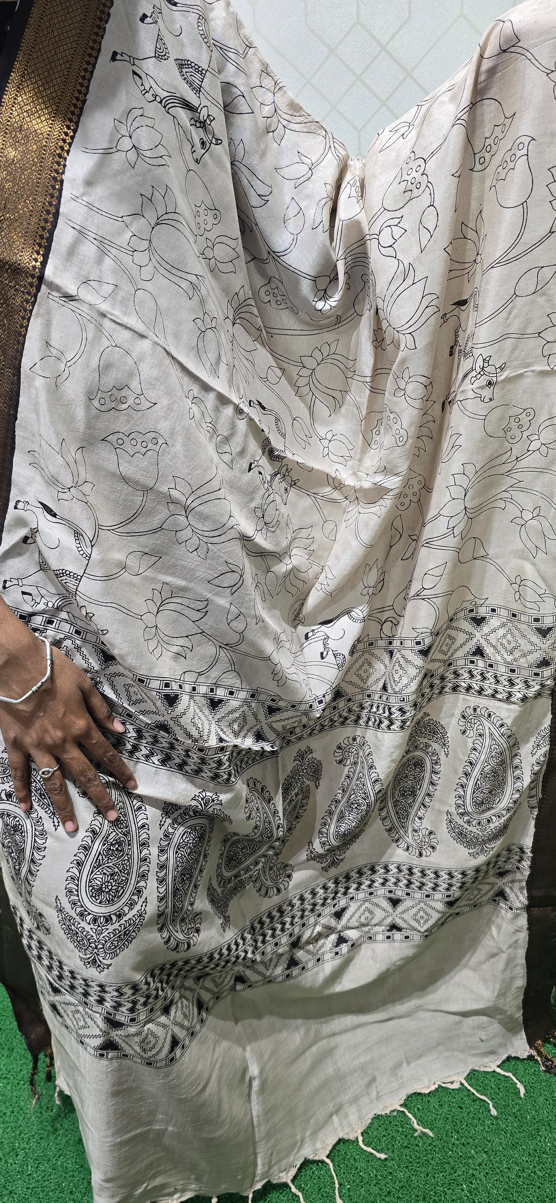 2.5 mtrs Chennuri silk dupatta with Nizam borders and tassels. If you have any specific requirements contact us in whatsapp no : 9385964264