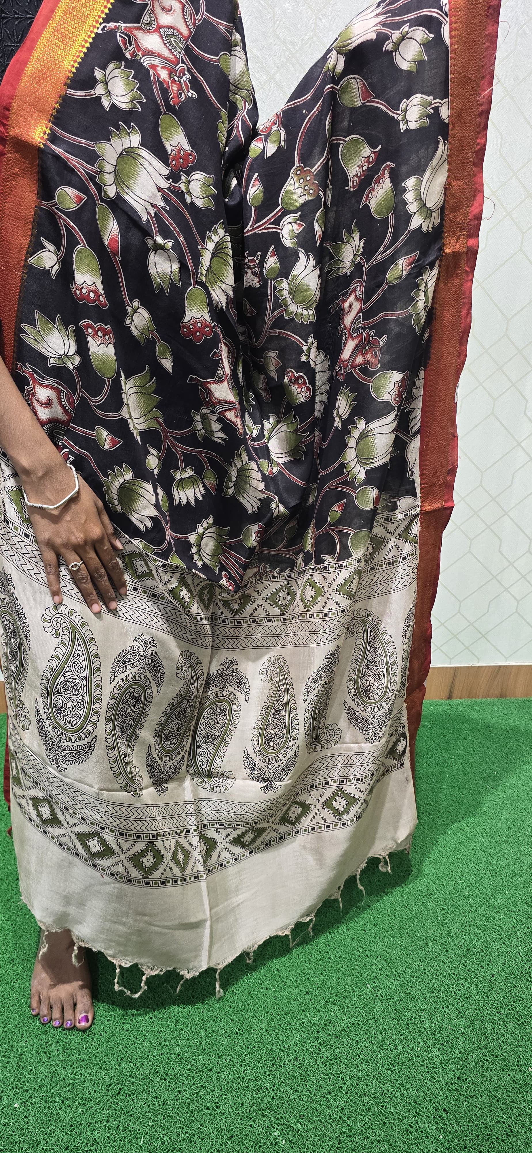 Can be paired with Plain / Raw silk / Mangalagiri / Anarkali / Readymade Tops, Frocks etc or you can style like half saree as well.