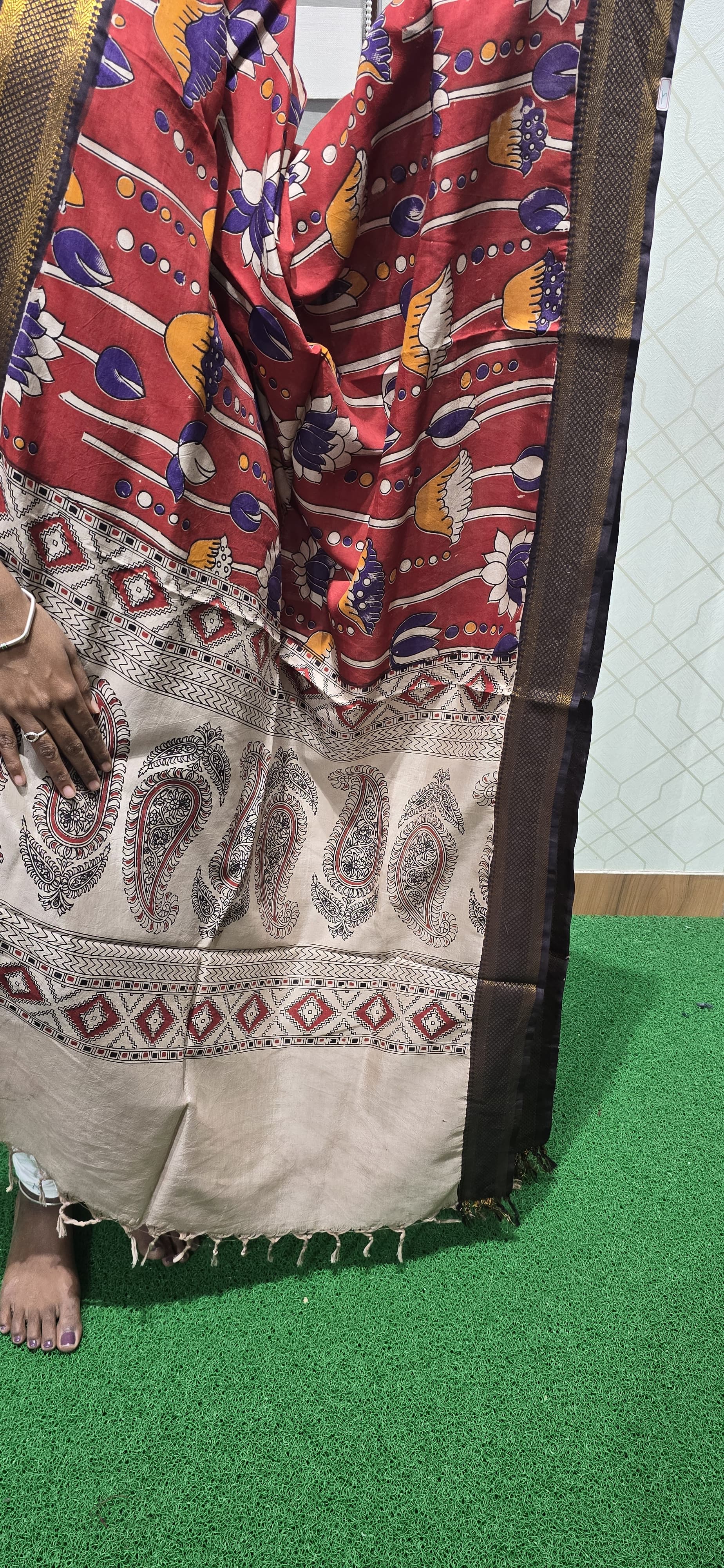 2.5 mtrs Chennuri silk dupatta with Nizam borders and tassels. If you have any specific requirements contact us in whatsapp no : 9385964264