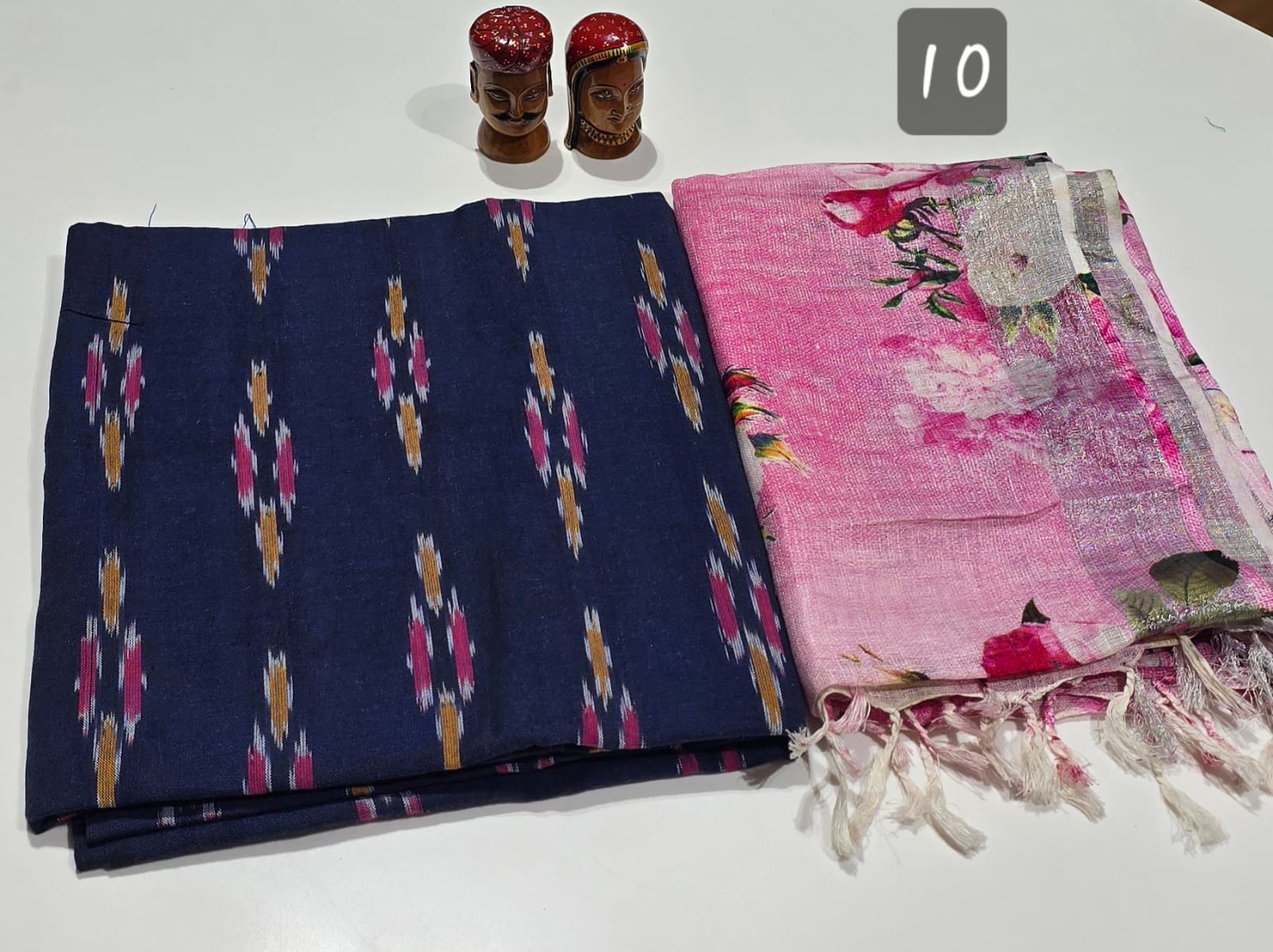 2.5 meters premium quality pure Ikkat cotton top with double side weavings, no bottom, 2.5 meters premium quality pure linen cotton dupatta with silver zari borders and tassels.