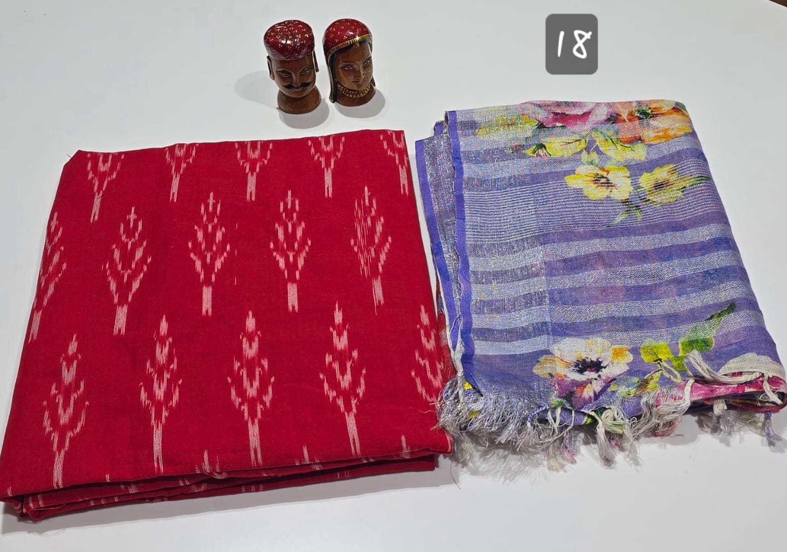 2.5 meters premium quality pure Ikkat cotton top with double side weavings, no bottom, 2.5 meters premium quality pure linen cotton dupatta with silver zari borders and tassels.