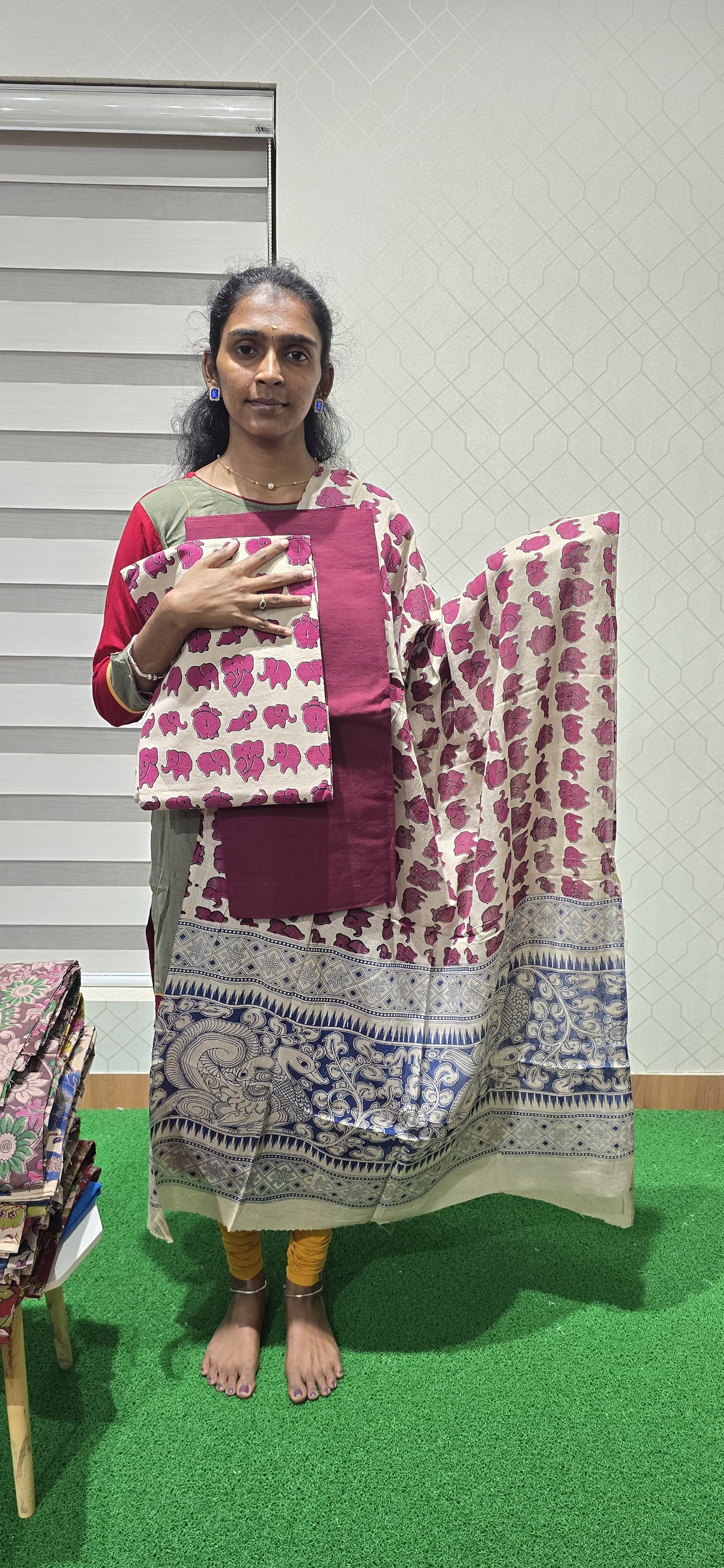 Cotton top, kalamkari Cotton bottom, kalamkari cotton dupatta.