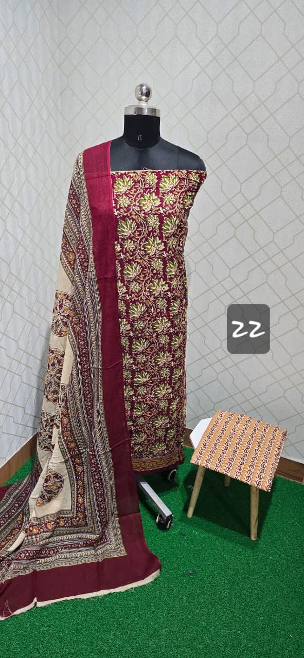 Excellent quality both side same kalamkari dyed Cotton top, premium kalamkari dyed cotton bottom, kalamkari dyed soft cotton dupatta.