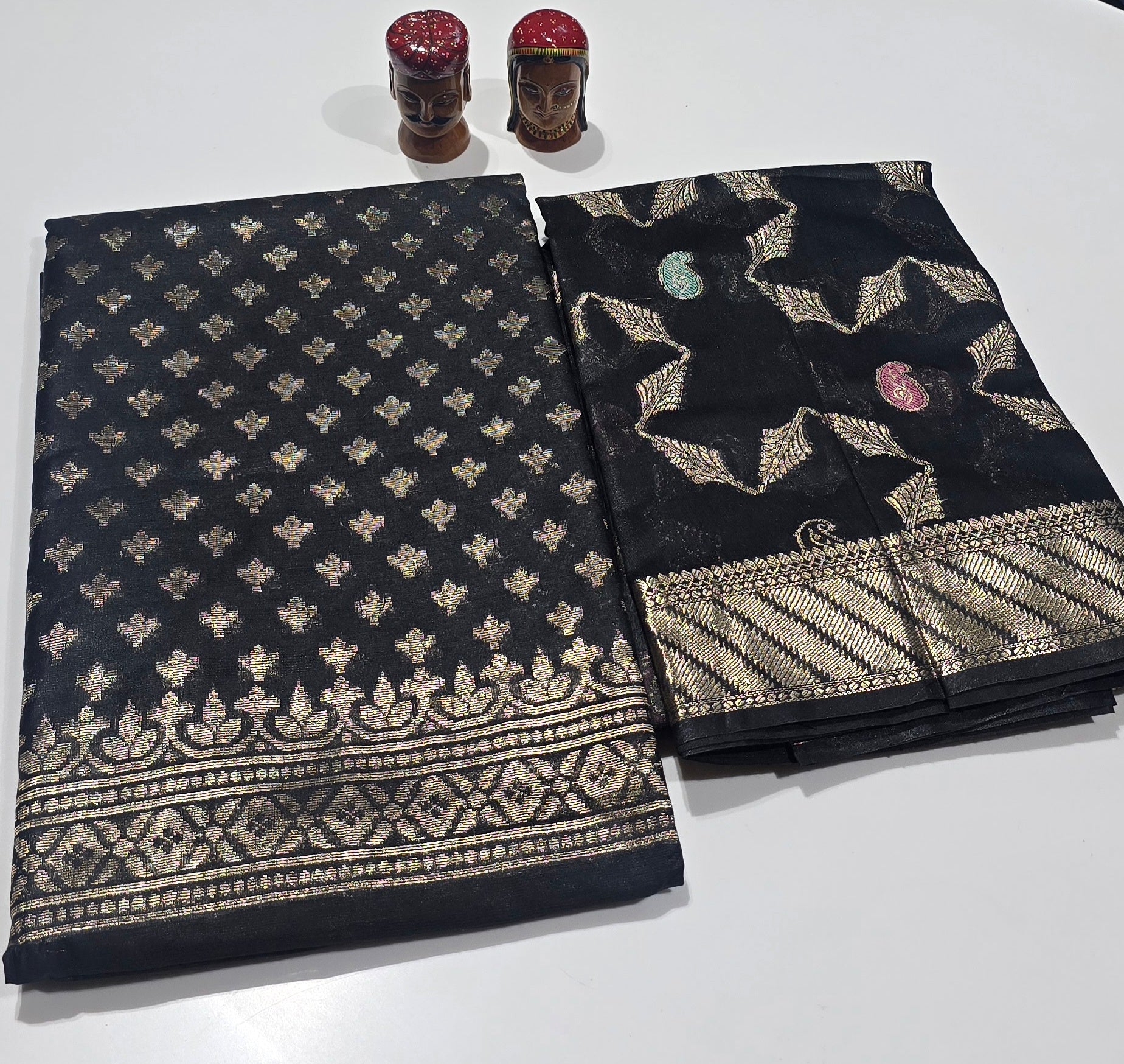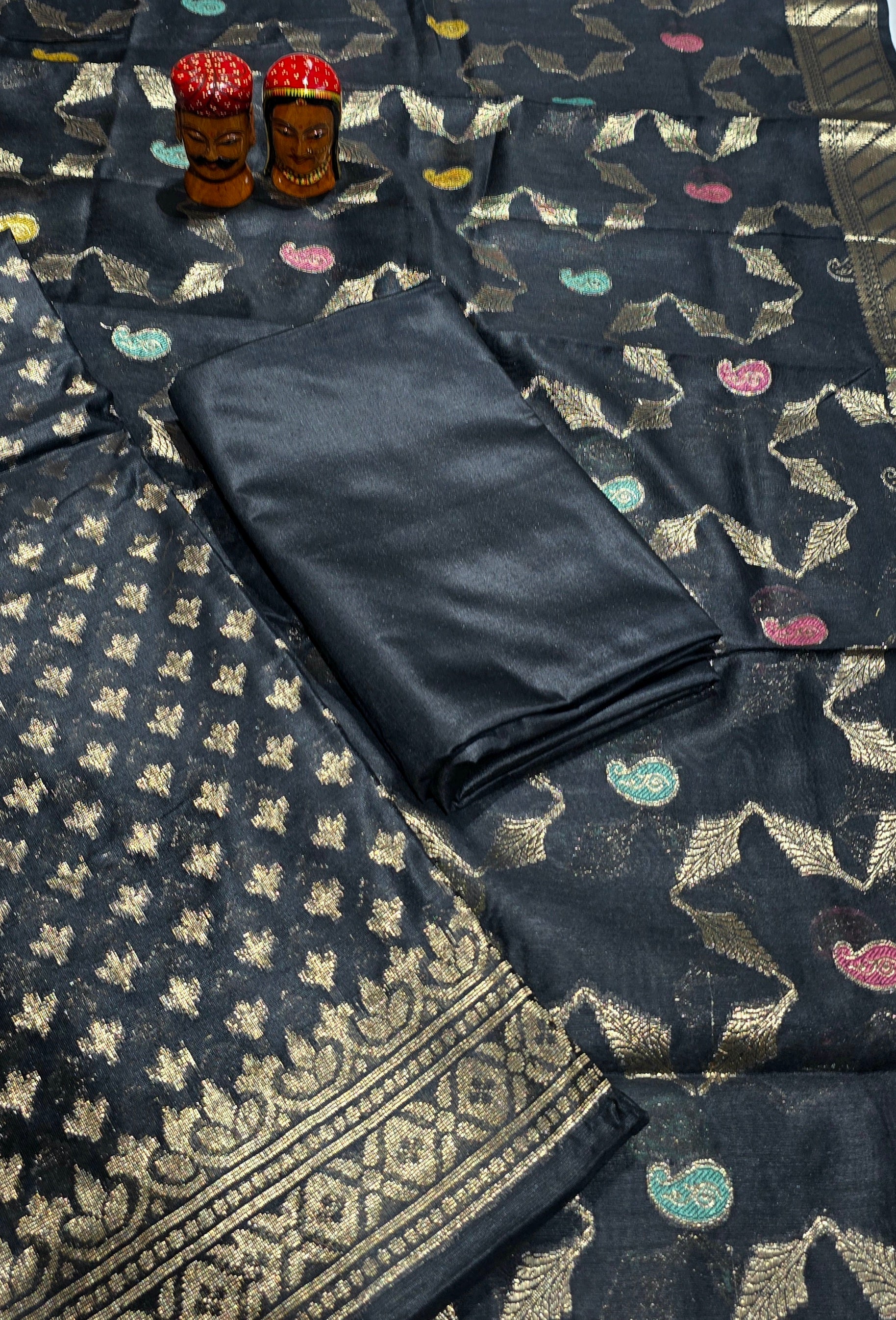 Damn gorgeous both side very rich Banarasi brocade weaved silk top with grand daman, rich silk cotton bottom, lengthy completely benarasi weaved silk dupatta with zari borders and tassels.