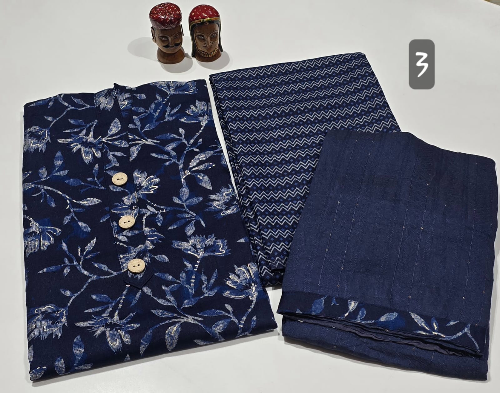 Both side floral printed such a premium quality pure reyon cotton top with rich neck buttons, premium reyon cotton bottom, fully jaccard weaved and sequence worked soft silk dupatta with tapings.