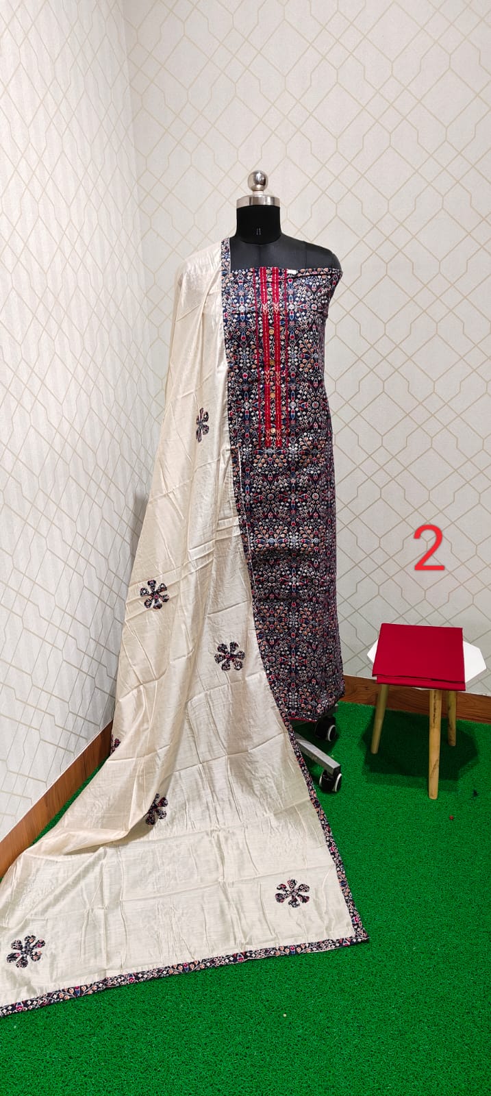 Measurement of fabric will not be the same and it varies depends on Design/Fabric/ Concept/ Manufacturer. Most of top, bottom and dupatta measurement will start from 2 and goes up to 2.5 meters.