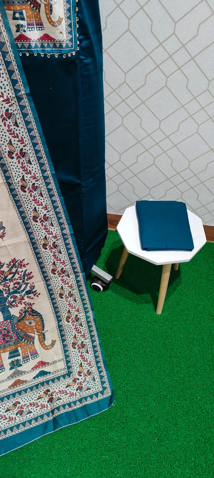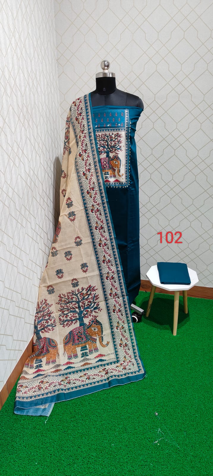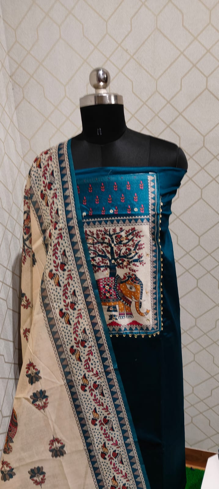 Dark rama blue shaded Extremely rich quality best selling jam satin cotton top with elegant meck patch,cotton bottom, digital printed soft muslin cotton dupatta