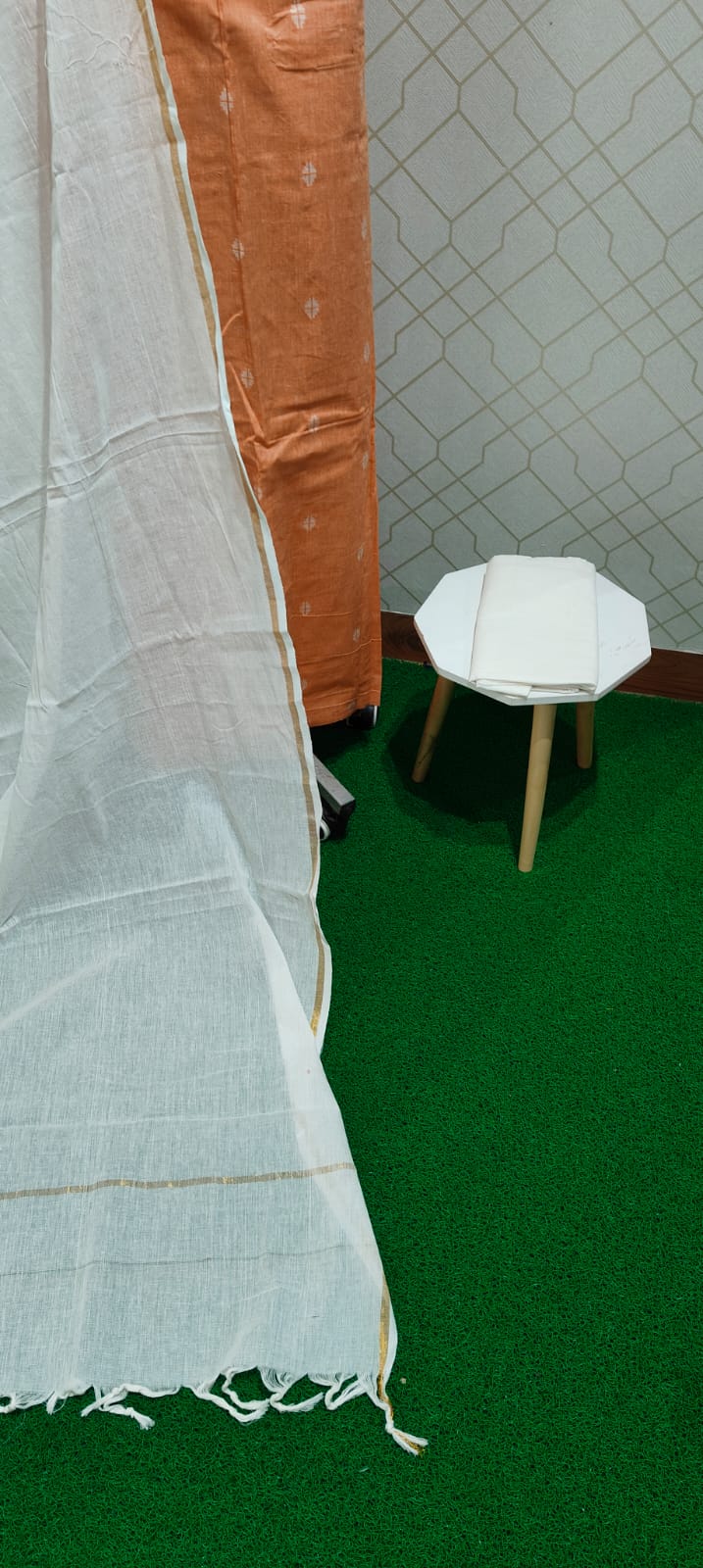 Both side thread weaved pure cotton top, pure cotton bottom, pure cotton dupatta with zari borders and tassels..