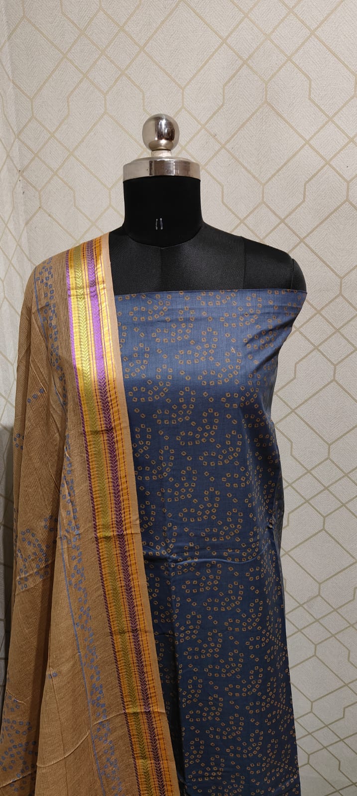 Both side thread weaved pure cotton top, pure cotton bottom, pure cotton dupatta with zari borders and tassels..