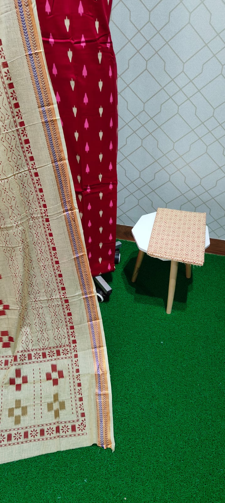 Both side printed pure cotton top, pure cotton bottom, pure cotton dupatta with zari borders and tassels..