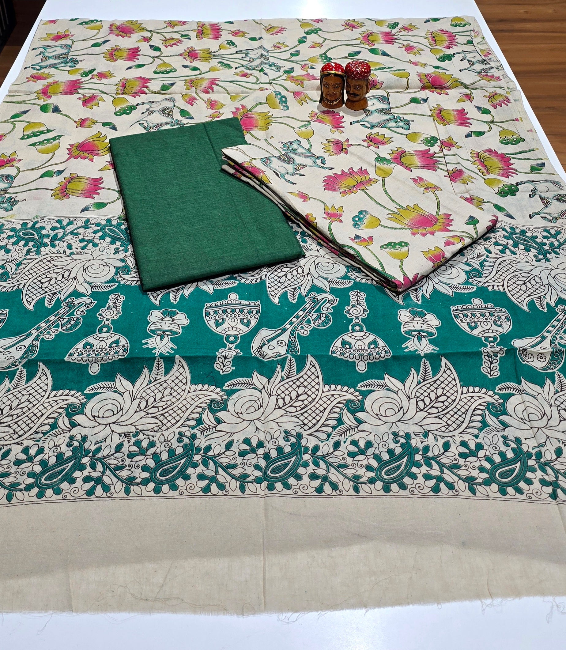 Superb quality 100% pure cotton top, 100% pure authentic pure Kalamkari cotton bottom, 100% pure authentic kalamkari cotton dupatta...